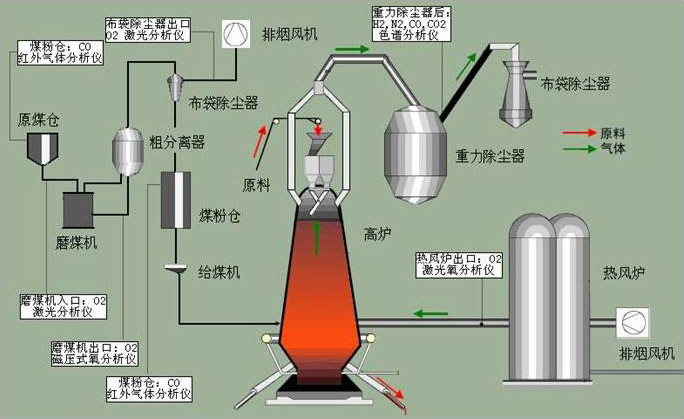 高爐煤氣是高爐煉鐵過程中所得到的一種副產(chǎn)品,其主要成分CO,?CO2?,?N2?,?H2?,CH4等,?屬于重要的二次能源。 針對(duì)噴煤中煙煤的易揮發(fā)性、強(qiáng)爆炸性,國惠激光氣體分析儀可在線實(shí)時(shí)監(jiān)測高爐爐氣中的多氣體組分,指導(dǎo)高爐安全生產(chǎn),優(yōu)化工藝,降低生產(chǎn)成本;?